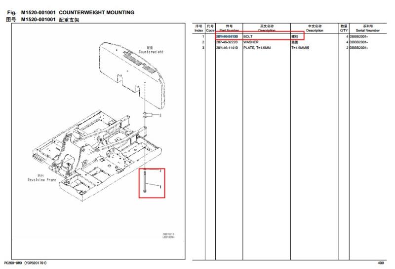 pc200/210/220/240-7/8/mo配重螺絲