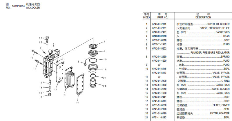產(chǎn)品簡介:產(chǎn)品名稱:)機油散熱器附件頭(笑臉的)產(chǎn)品品牌:KOMATSU/小松產(chǎn)品零件號:6742-01-2500產(chǎn)品適用機型: pc300/360-7產(chǎn)品顏色:銀色產(chǎn)品類目: 發(fā)動機配件產(chǎn)品價格:因價格隨時變動,具體價格咨詢客服人員產(chǎn)品名稱:過…